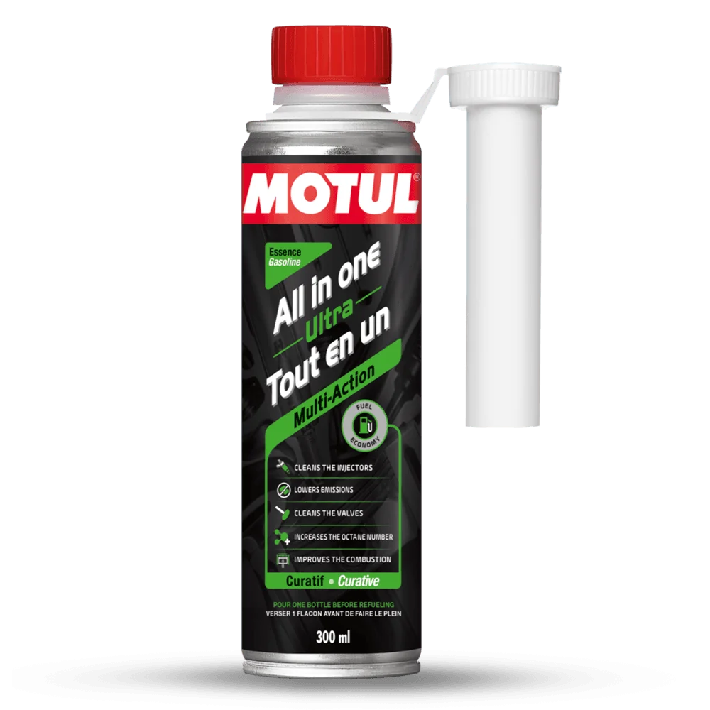 MOTUL All In One Ultra is a powerful multi-action fuel system cleaner designed to clean, protect, and restore performance in both gasoline and diesel engines. Its advanced formula removes carbon deposits, cleans injectors, intake valves, and combustion chambers, while also lubricating and protecting the fuel system. It improves engine efficiency, reduces emissions, and restores lost power — all in one easy treatment.